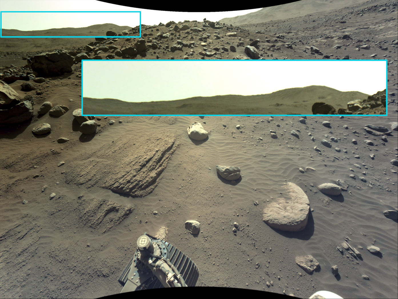Con questi settaggi, qui corredati dalla simulazione del campo inquadrato dalla MastCam-Z a 26 mm di focale, otteniamo una fedele rappresentazione della visuale di Perseverance.