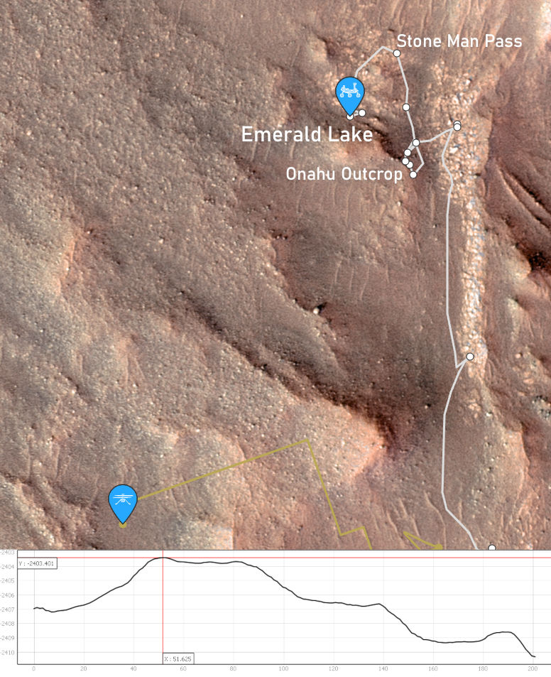 La lunga attesa per il prossimo volo di Ingenuity ha probabilmente a che fare con la sua posizione rispetto al rover, e l’impossibilità per quest’ultimo di stabilire un contatto radio affidabile con il suo compagno.