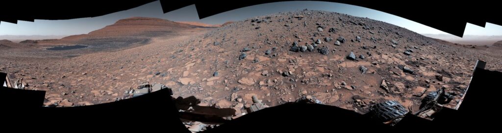 Dopo tre tentativi falliti nel corso di tre anni, il 14 agosto Curiosity ha raggiunto la cresta della Gediz Vallis, ciò che rimane dei flussi di detriti depositati da impetuosi fiumi che si sono asciugati 3 miliardi di anni fa. Con l’occasione del traguardo raggiunto il rover ha scattato uno splendido mosaico a 360° che combina 136 singole immagini scattate il 19 agosto.