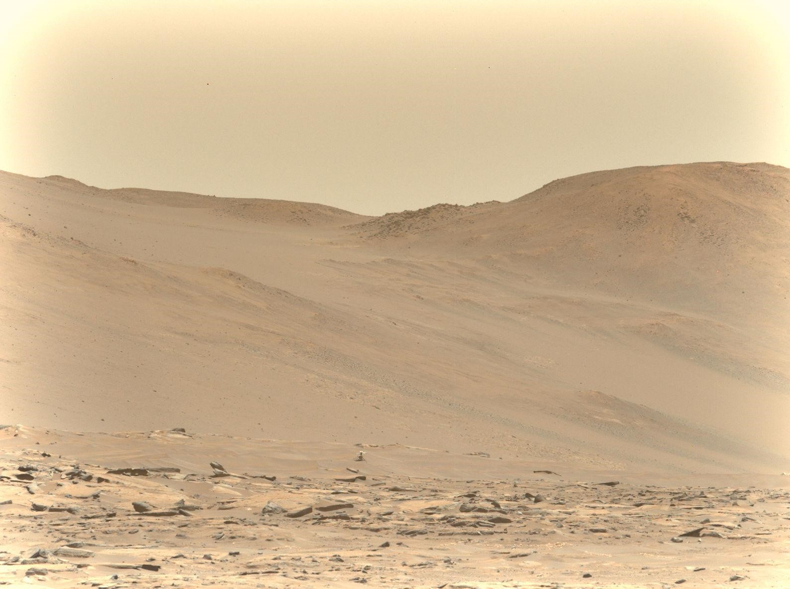 Il grande rilievo nella parte centrale dell’immagine è la parte più alta della cresta, che si alza per ulteriori 21 metri e che il rover sta continuando a costeggiare mentre prosegue verso sud.