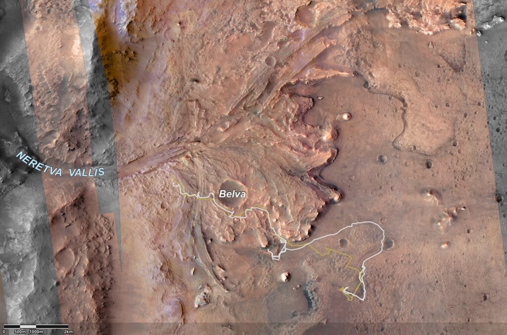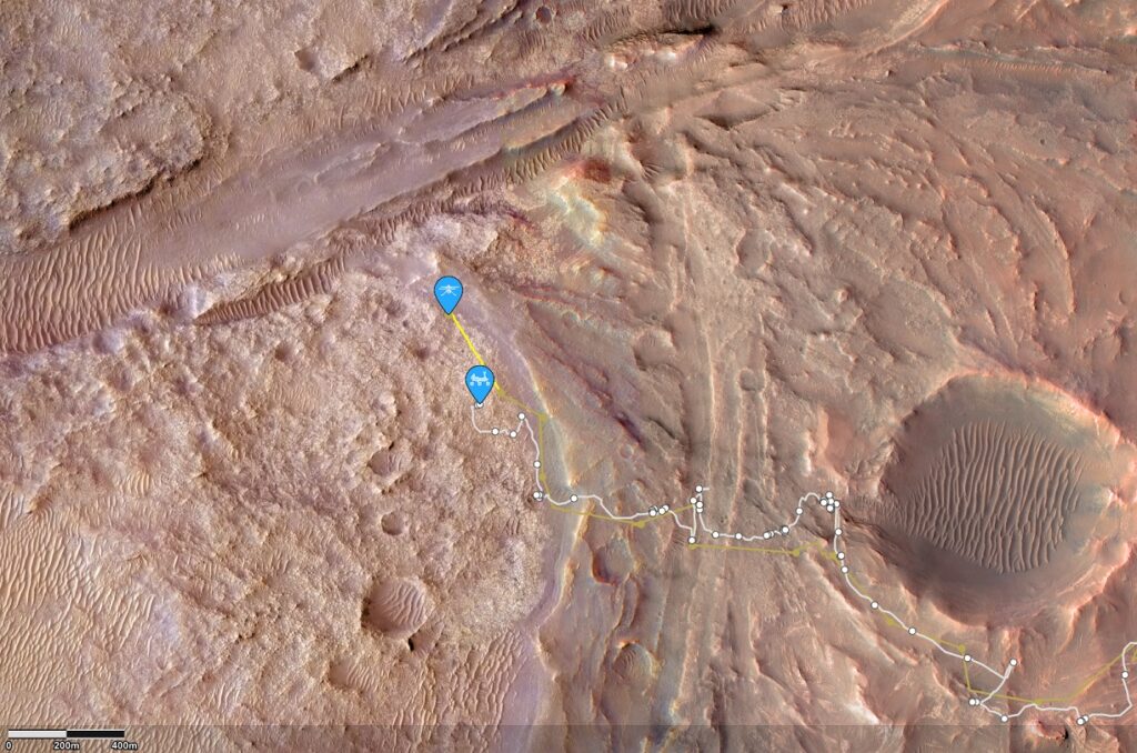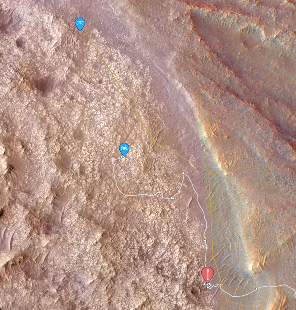 L’ultimissimo aggiornamento sulla posizione del rover lo vede localizzato ancora nel punto di quest’ultima operazione, impegnato nell’analisi della roccia esposta. Nei prossimi giorni e le prossime settimane vedremo se Perseverance sarà comandato per proseguire lo spostamento verso nord o se prolungherà la permanenza nel luogo corrente per prelevare magari un nuovo campione.