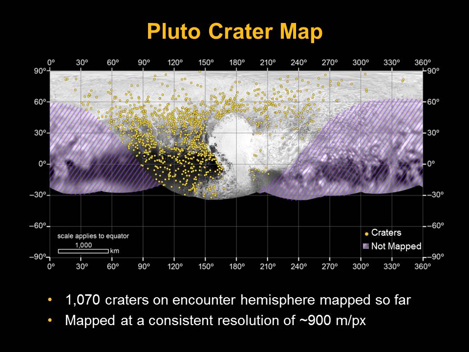 “Abbiamo mappato più di mille crateri su Plutone, e variano molto sia in dimensioni che in aspetto,” spiega Kelsi Singer dell’SwRI. “Tra le tante cose, mi aspetto che le analisi dei crateri ci diano importanti indizi su come questa parte del sistema solare si sia formata.”