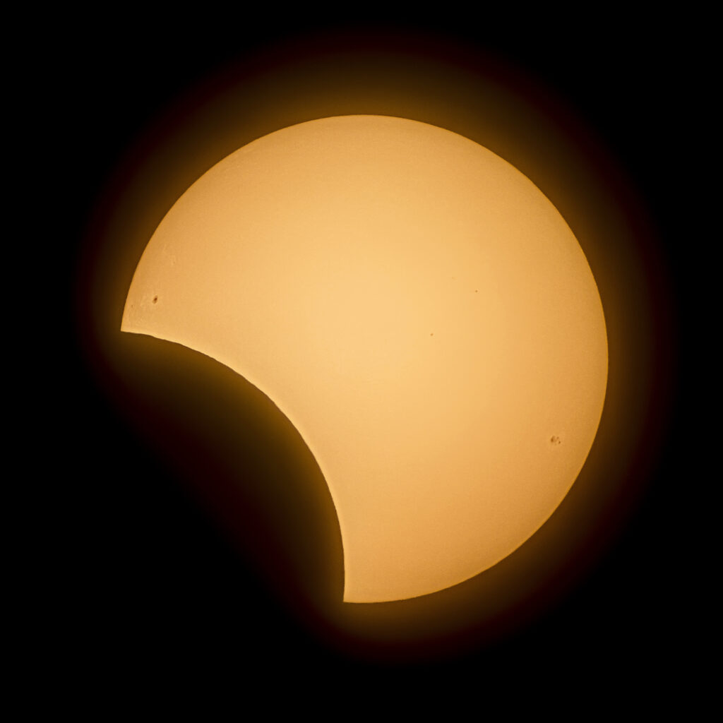Versione con e senza saturazione colori, realizzate da Serramanna in Sardegna con Canon 6D a fuoco diretto di un quadrupletto Tecnosky 65 e filtro solare. ISO 200 Scatto 1/800 ss Credit: Samuele Pinna.
