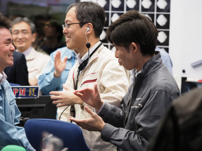 Non potendo affidarsi ai dati della telemetria, tutta la sala ha seguito quasi in apnea le misurazioni doppler, che hanno confermato il corretto comportamento della sonda. Poco prima della mezzanotte, è arrivata infatti la prima conferma dal poject manager della missione: alle 23:48 ora italiana (le 7:48 del 22 febbraio per il giappone) la sonda stava riprendendo quota.