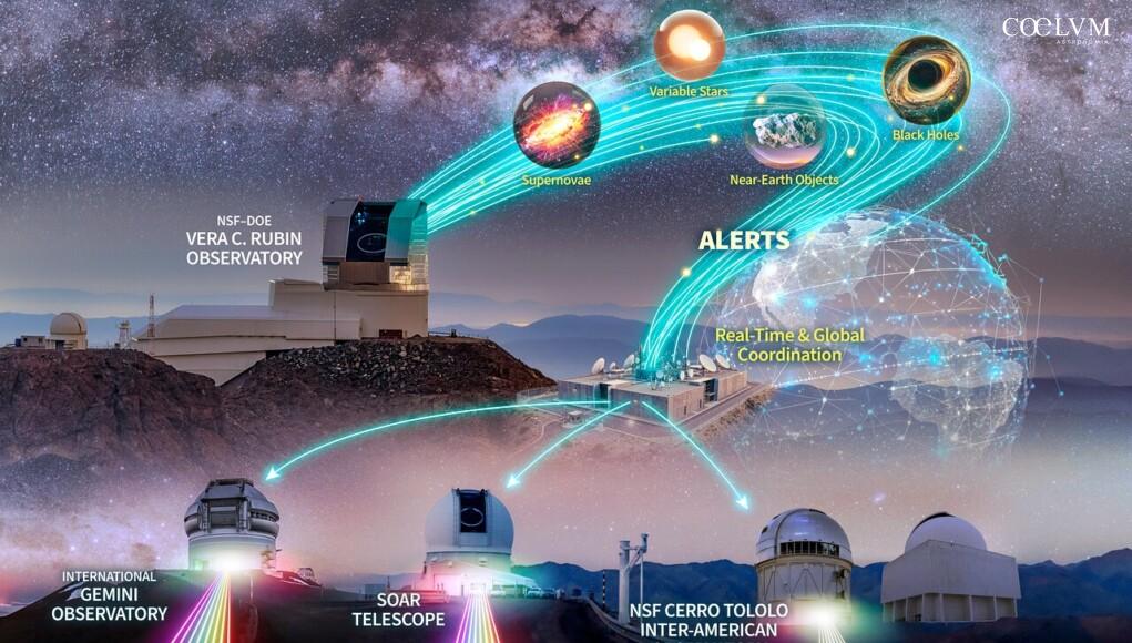 Il nuovo sistema di allerta del Vera C. Rubin Observatory ha già dimostrato di poter attivare osservazioni astronomiche di follow-up in modo coordinato. Un recente test operativo ha infatti permesso di seguire in tempo quasi reale un evento segnalato dal telescopio, utilizzando altre strutture della rete scientifica gestita da NSF NOIRLab.