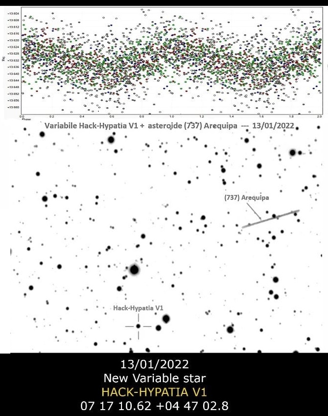 È così che una nuova stella variabile è stata aggiunta la catalogo VSX e denominata Hack-Hypatia V1 (qui il bollettino ufficiale)
