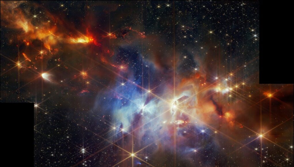 Per la prima volta, un fenomeno che gli astronomi speravano da tempo di poter fotografare direttamente è stato catturato dalla Near-InfraRed Camera (NIRCam) del James Webb Space Telescope della NASA/ESA/CSA. In questa splendida immagine della Nebulosa Serpente, la scoperta si trova nella zona settentrionale di questa giovane e vicina regione di formazione stellare.