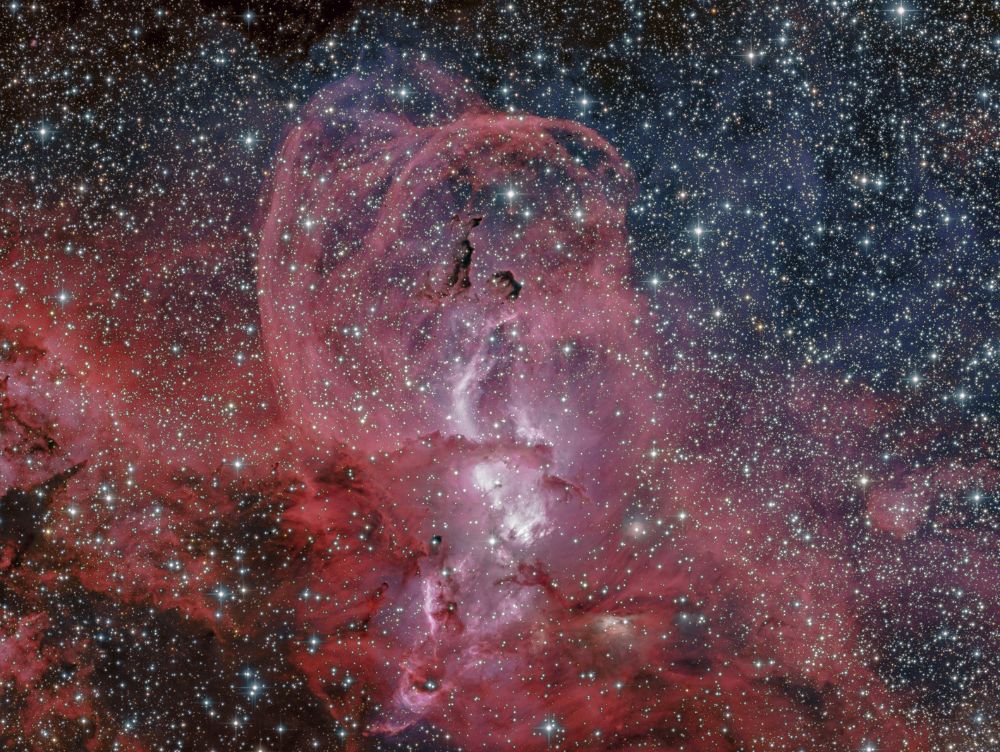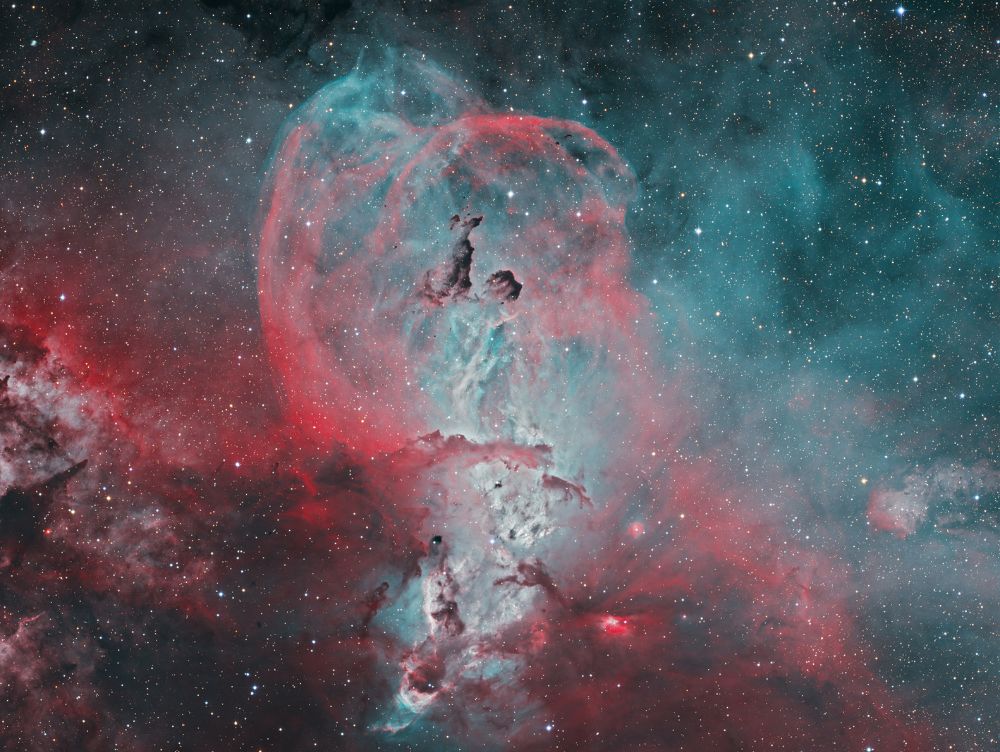 Il progetto ShaRA#12 ci ha portato a confrontarci con l’immagine di una nebulosa che si presta molto bene ad essere rappresentata sia in colori naturali RGB che in Hubble palette, ovverosia nella combinazioni di canali in banda stretta SHO (zolfo, idrogeno, ossigeno). Questa rappresentazione mette in evidenza le diverse componenti dei gas che compongono la nebulosa, e prende il nome dal telescopio spaziale Hubble, per cui è stata definita ed utilizzata le prime volte. La grande mole di dati necessari per realizzare l’immagine (4 canali LRGB + 3 NB, cui si sono aggiunti altri 3 RGB con pose più brevi per ricavare le stelle) è stata fornita al gruppo da uno dei membri, Vikas Chander, che l’ha raccolti tramite il suo telescopio da 60cm posto in Cile.