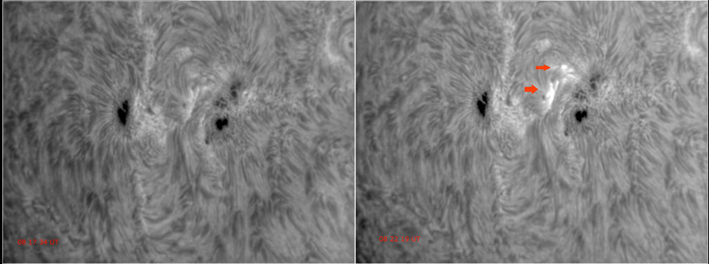 Al contrario della ricerca amatoriale del profondo cielo, dove bastano un telescopio di medie dimensioni, una camera CCD o CMOS per accedere a supernove, fotometria, astrometria, per inagare il Sole la strumentazione necessaria è molto più complessa e costosa e in genere del tutto al di fuori della portata degli astrofili. L’unica attività nella quale, a mio avviso il contributo degli amatori resta possibile e fattivo è quella del monitoraggio e della ricerca dei flares, gigantesche esplosioni dovute a fenomeni di ricombinazione magnetica che accelerano particelle cariche e le portano in collisione col plasma: tenuto conto che non sempre la copertura satellitare per la rilevazione di tali fenomeni è garantita, il monitoraggio da parte di una notevole quantità di astrofili solari potrebbe essere utile, come nel caso della campagna osservativa F-CHROMA del 2015 . Dal 19 al 27 settembre di quell’anno, F-CHROMA acronimo di “Flare Chromospheres: Observations, Models and Archives” ha coordinato 10 giorni quasi di osservazione ad alta risoluzione di flares solari, in cui sono stati coinvolti diversi dei principali Osservatori e strumenti sia da Terra che dallo spazio, tra cui CRISP@SST, IBIS@DST e IRIS. Questi strumenti forniscono dati spettrali preziosissimi, in particolare per quel che riguarda il problema della deposizione dell’energia nella “bassa” atmosfera solare, ma hanno campi di vista molto limitati (tra 1 e 2 minuti d’arco). L’acquisizione di immagini di contesto risulta quindi fondamentale per una completa comprensione della genesi dei flares, ed in tale ambito la partecipazione degli astrofili solari si è rivelata di grande utilità. La campagna è stata quindi un interessante episodio di collaborazione professionisti-amatori nell’intento finale di una migliore comprensione dei fenomeni che avvengono in cromosfera, che mi auguro venga ripetuta.
