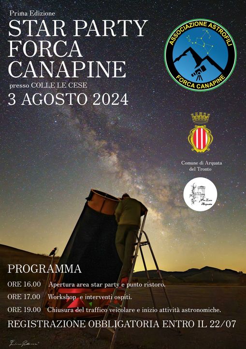 REGISTRAZIONE OBBLIGATORIA sul sito dell’associazione Astrofili Forca Canapine: https://www.astroforcacanapine.it/MainPrenotazione.aspx