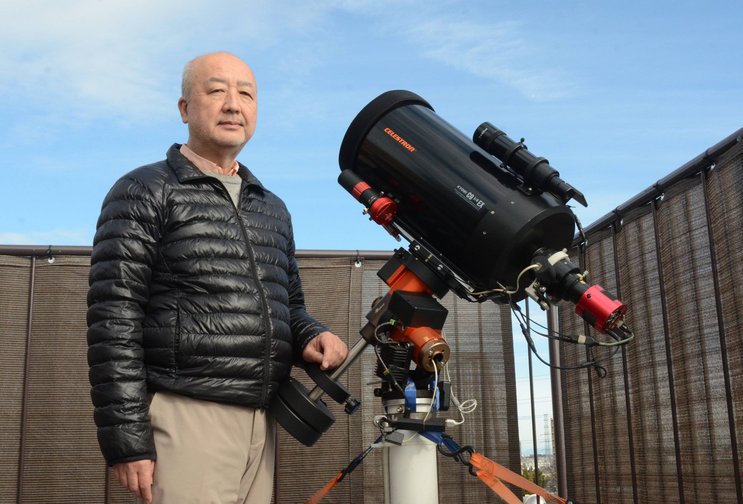 HIdehiko Okoshi accanto al suo telescopio Celestron.