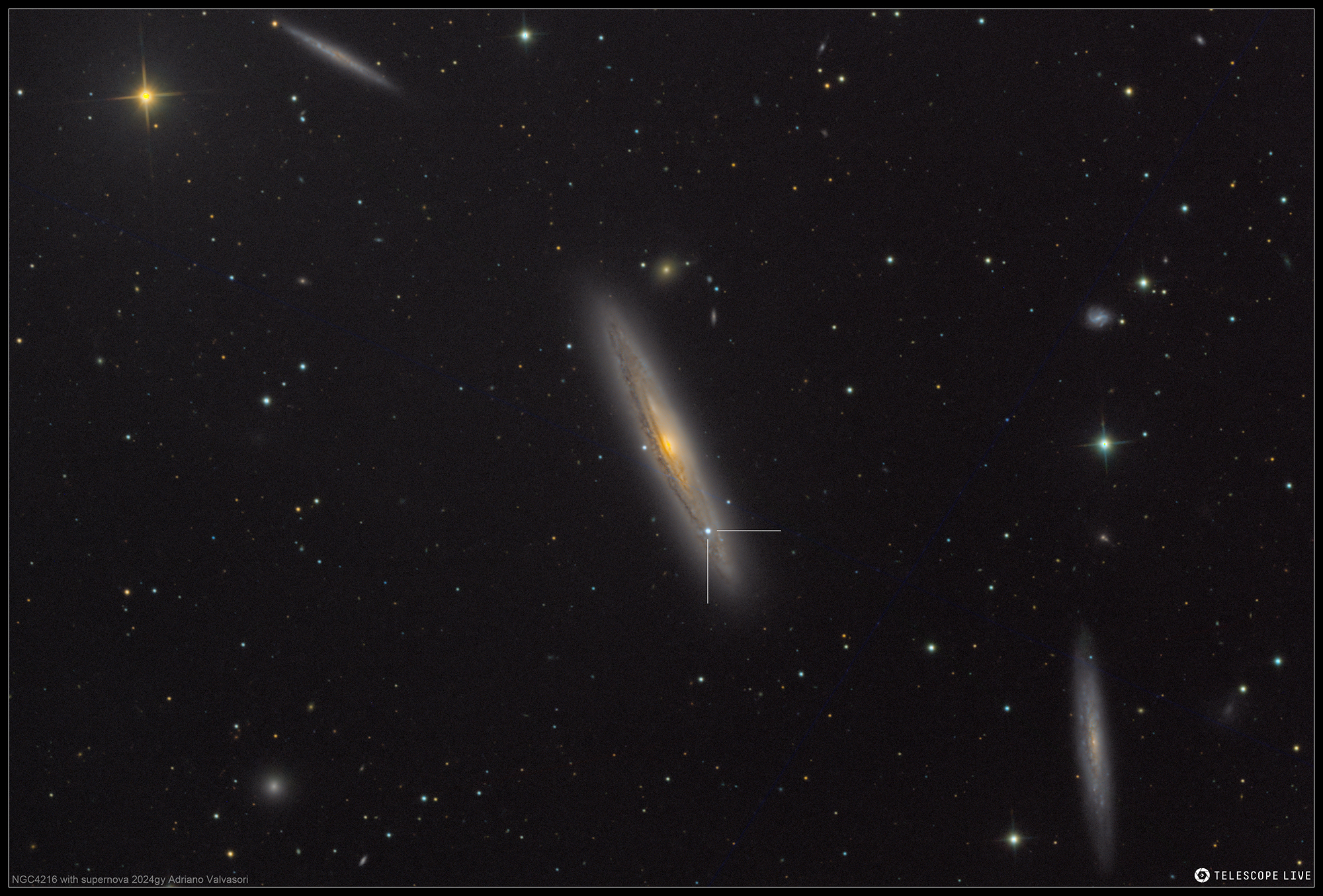 4) Immagine della SN2024gy in NGC4216 ripresa da Adriano Valvasori in remoto dal Cile con un telescopio Dall-Kirkam da 610mm F.6,5 somma di 3 immagini da 300 secondi per canale LRGB.