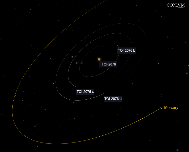 TOI-2076 è una stella di tipo K situata a circa 42 parsec dalla Terra (circa 137 anni luce). Ciò che rende questo sistema particolarmente interessante è la sua età: circa 200 milioni di anni, quindi meno del 5 % dell’età del Sistema Solare. Questo significa che i pianeti del sistema si trovano in una fase evolutiva ancora molto dinamica.
