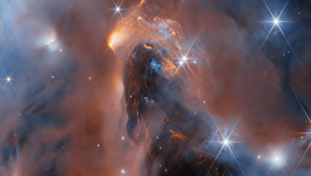 Mentre in luce visibile la maggior parte delle stelle rimane nascosta alla vista, la visione nell’infrarosso del telescopio Webb ci permette di penetrare attraverso le polveri cosmiche che si addensano nella regione, per rivelare la presenza di giovani stelle, nane brune e oggetti vaganti di massa planetaria, non legati gravitazionalmente ad altri corpi celesti.