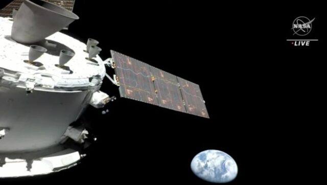 L’immagine immortalata in questo scatto da una delle 4 telecamere montate sul modulo di servizio ORION della missione Artemis 1, strappa stupore e lascia immobili, incapaci forse di accettare che tutto sia racchiuso in quella minuta biglia blu.