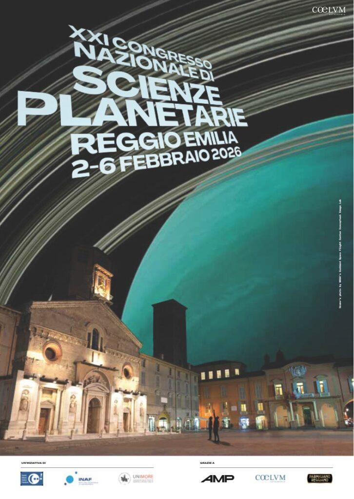 La “Società Italiana di Scienze Planetarie – Angioletta Coradini” (SISP-AC) è lieta di annunciare che sta organizzando la XXI edizione del Congresso Nazionale di Scienze Planetarie. Il Congresso si svolgerà a Reggio Emilia dal 2 al 6 Febbraio 2026 nell’aula magna “Manodori” dell’Università degli studi di Modena e Reggio Emilia (UNIMORE). L’organizzazione dell’evento si avvale della collaborazione dell’Istituto Nazionale di Astrofisica e del Dipartimento di Scienze e Metodi dell’Ingegneria di UNIMORE.