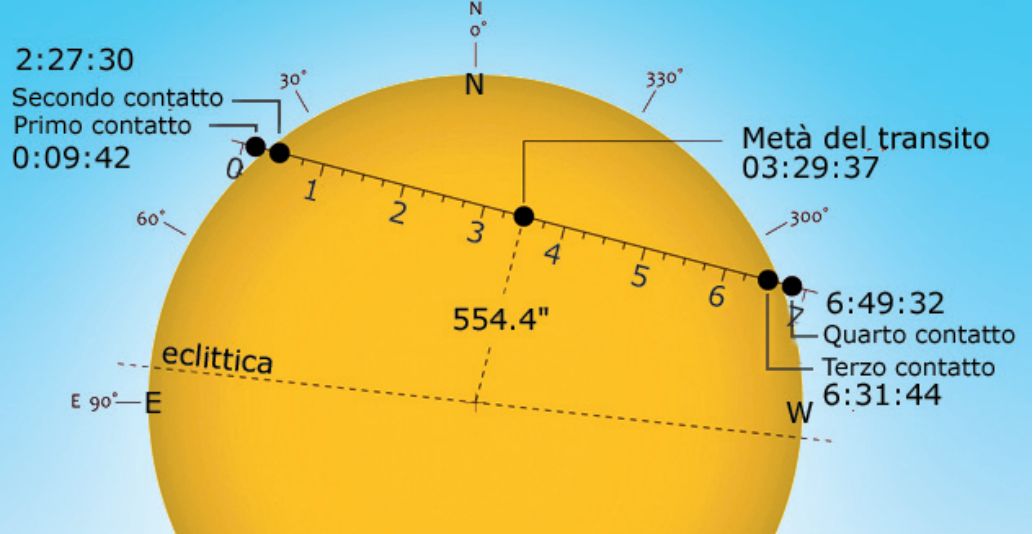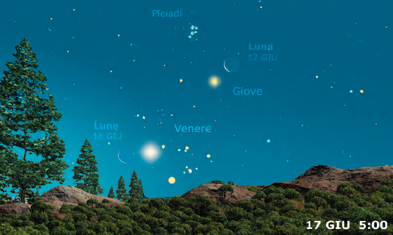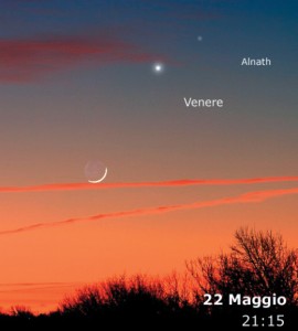A quell’ora il pianeta sarà alto 9 gradi sull’orizzonte locale e la Luna +7°, ma tutta la scena potrà essere seguita per alcune ore fino alle prime luci dell’alba.