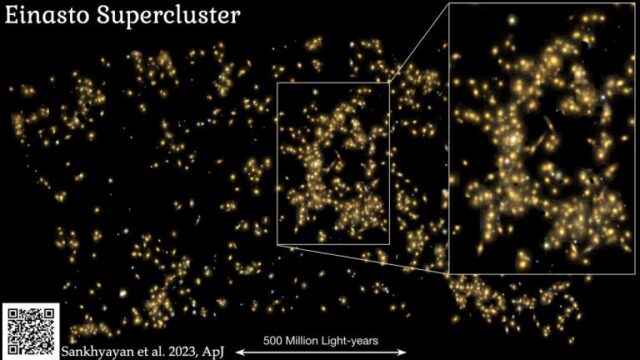 I superammassi come Laniakea ed Einasto (distanti 3 miliardi di anni luce) sono tra le strutture più grandi dell’Universo. La scoperta di questo ultimo superammasso prende il nome dal professor Jaan Einasto, che fu un pioniere nel campo dei superammassi e ha festeggiato il suo 95esimo compleanno il 23 febbraio 2024.