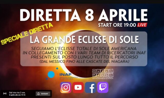 L’8 Aprile 2024 un’eclissi di Sole sarà visibile dall’America del Nord e Centrale, e marginalmente da Hawai’i, Polinesia Francese, Isole Cook, Kiribati, Groenlandia, Islanda, Irlanda e Regno Unito. L’eclissi sarà totale in un corridoio di circa 180 km di larghezza: la banda di totalità attraverserà Messico, gli Stati Uniti e il Canada. L’eclissi sarà parziale al di fuori di questa fascia nei rimanenti luoghi in cui l’eclissi sarà visibile.