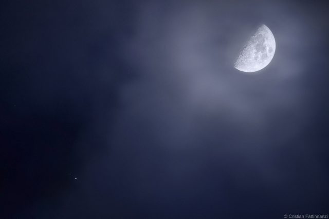 La congiunzione ci terrà compagnia per quasi tutta la notte. Il pianeta e il satellite tramonteranno infatti solo intorno alle 3:00 del giorno successivo.