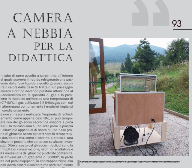 L’idea di realizzare per il nostro osservatorio astronomico una camera a nebbia, nacque in una visita dell’associazione ai Laboratori Nazionali di Frascati, in una delle giornate Open Labs, nel corso della quale restammo un’ora in contemplazione davanti ad uno strumento simile.