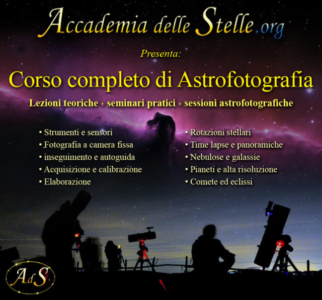 Torna il corso di Astrofotografia di Accademia delle Stelle! Un corso completo rivolto a tutti quelli che vogliono imparare a fotografare il cielo.