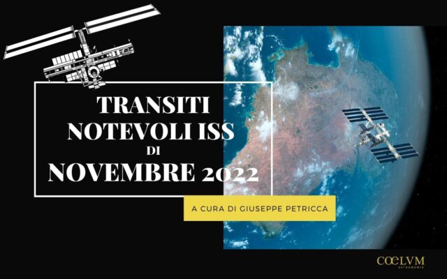 A Novembre la ISS – Stazione Spaziale Internazionale sarà rintracciabile nei nostri cieli sia ad orari mattutini che serali. Avremo molteplici transiti notevoli con magnitudini elevate durante quest’ultimo mese autunnale, auspicando come sempre in cieli sereni!