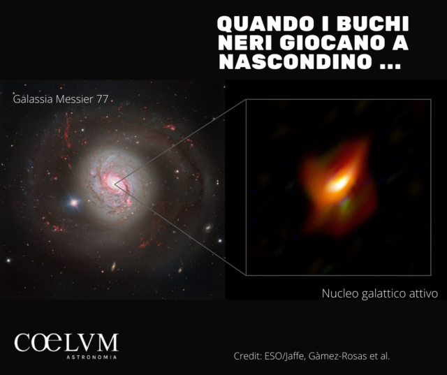 Al centro della galassia Messier 77 (nota anche come NGC 1068), avvolto da una nube di polvere cosmica, sembra nascondersi un buco nero supermassiccio.