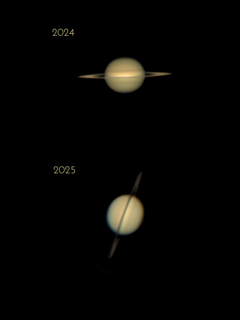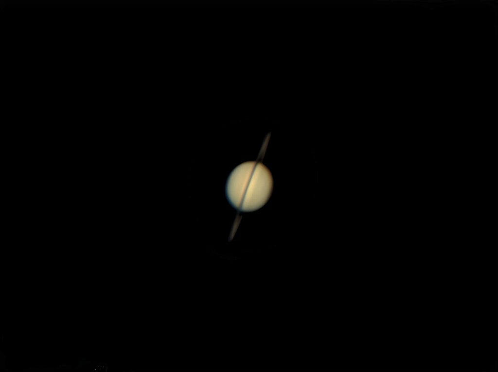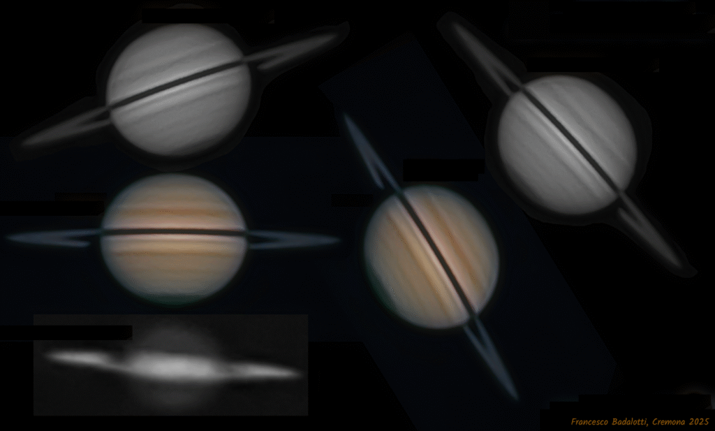 In questa immagine gli anelli si mostrano quasi perfettamente di taglio e molto più scuri rispetto ai giorni intorno all'opposizione,…