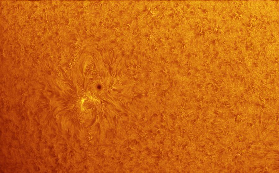 La cromosfera solare ripresa in H-Alpha il 6 agosto 2020. La foto mostra la regione attiva 2770 appartenente al 25° ciclo solare. Tecnosky 152/900mm a 3600mm focale. Daystar Quark Cromosphere. ZWO ASI 174MM