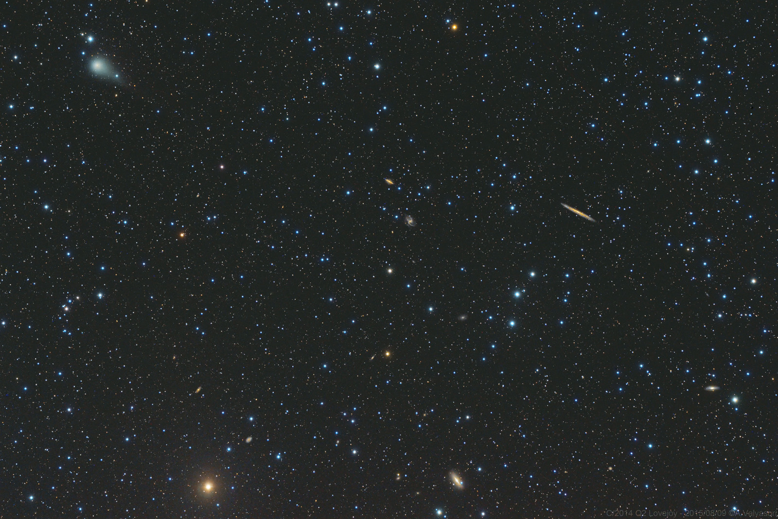 Cometa C/2014 Q2 Lovejoy mentre transita in un campo di galassie nella costellazione del Drago