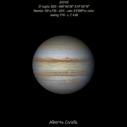 L’immagine evidenzia abbastanza bene le diverse fasce di Giove. Da quelle settentrionali alle meridionali, passando per l’equatore. Si scorge l’ingressa della GMR in basso a sinistra.