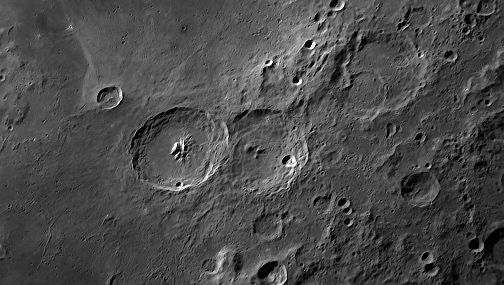 Dettagli dei tre crateri citati che si affacciano sul Mare Nectaris.