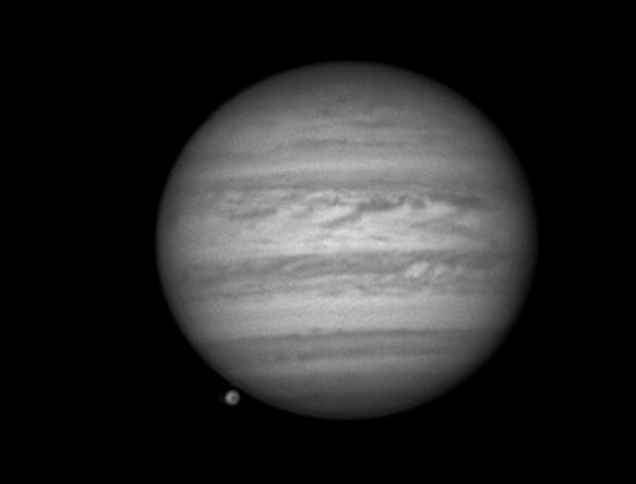 Giove terminata occultazione giace accanto alla sua luna Ganimede. Meade lx200 10" Barlow meade APO 2X QhylII Mono filtro rosso 120" Autostakkert2 Registax6