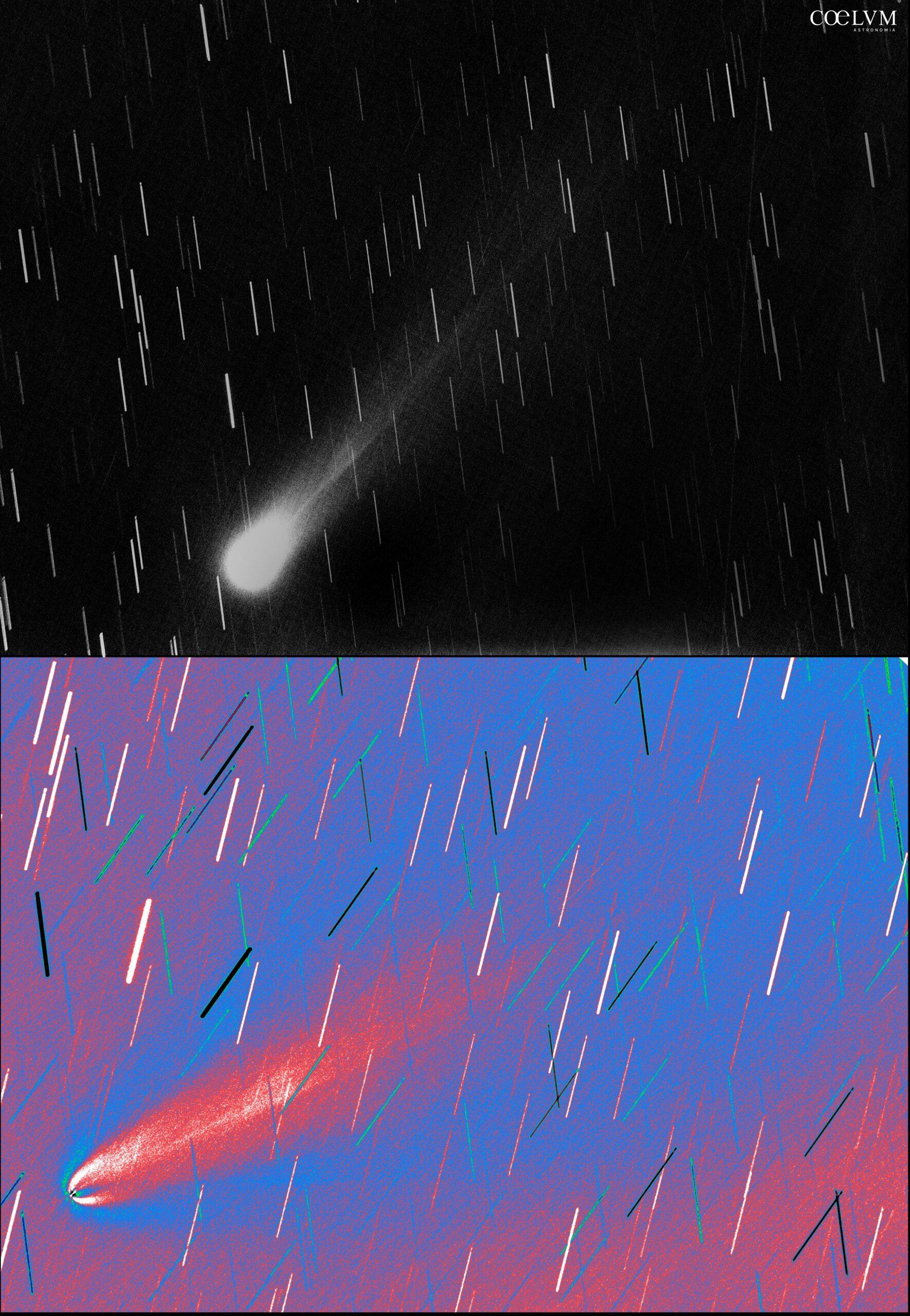 Ripresa in b/n e col filtro Larson Sekanina della cometa C/2025 A6 Lemmon che ne evidenzia le caratteristiche. Cielo di Milano con forte inquinamento luminoso, usato il filtro Ida Los D2 e la camera Asia 2600 mono. non è stato fatto uso di autoguida. Mattina del giorno 8 ottobre 2025 dalle 0450 alle 0600.