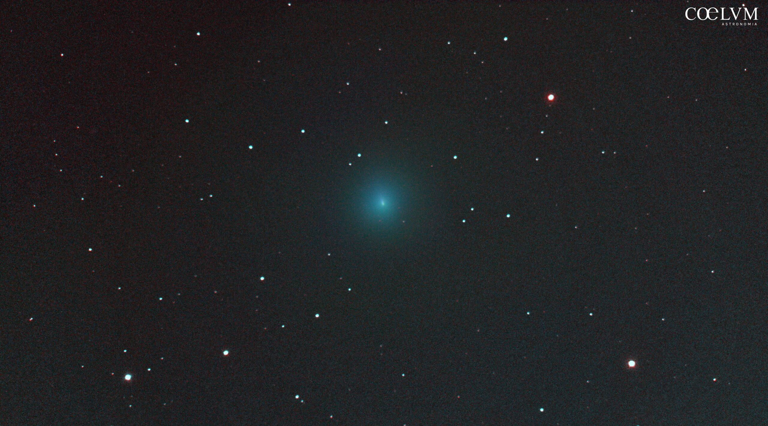 Ripresa in bicromia della cometa C/2025 R2 Swan con i filtri Swan band (Verde/blu) e H alpha (rosso).