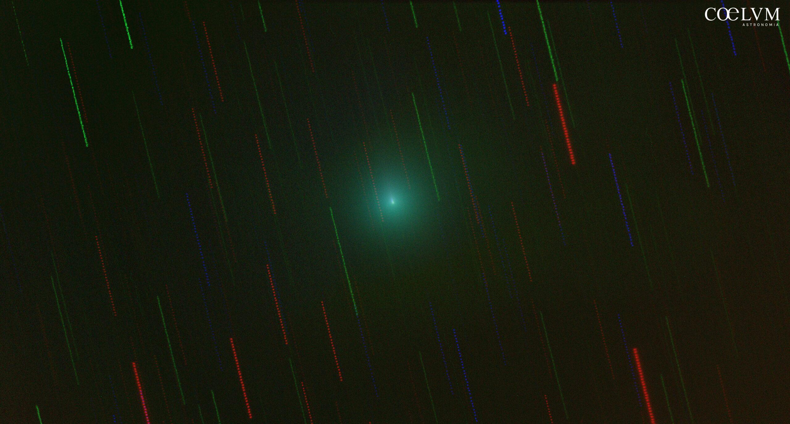 Tricromia RBG (H_alpha, Blu, Swan _Band) della cometa C/2025 R2 Swan. Cornaredo, MI, cielo bortle 7/8/9.