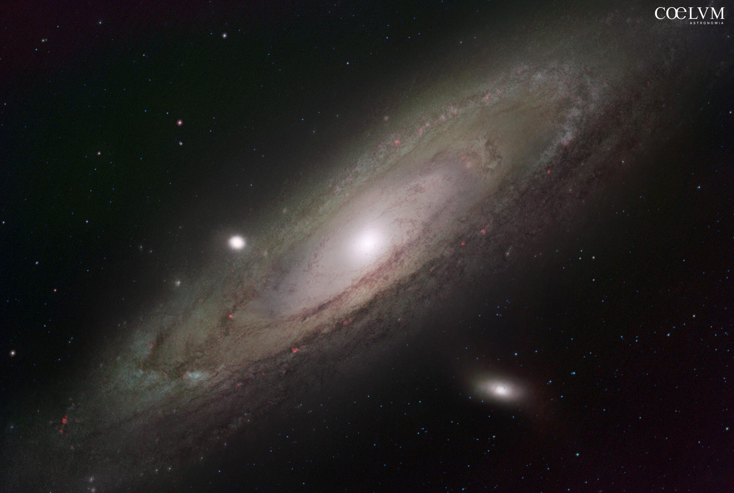 immagine in tricromia e H_alpha della galassia di Andromeda, ripresa col Celestron Rasa 8 dal cielo Bortle 7/8 di Cornaredo MI