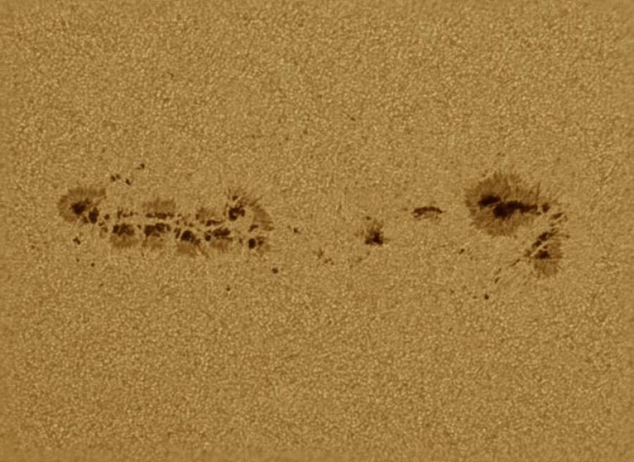 Regione attiva 4048 ripresa con il filtro Continuum e il prisma di Herschel cool ceramica. camera Asi 174 telescopio rifrattore apocromatico da 80mm f6 e Barlow 2x