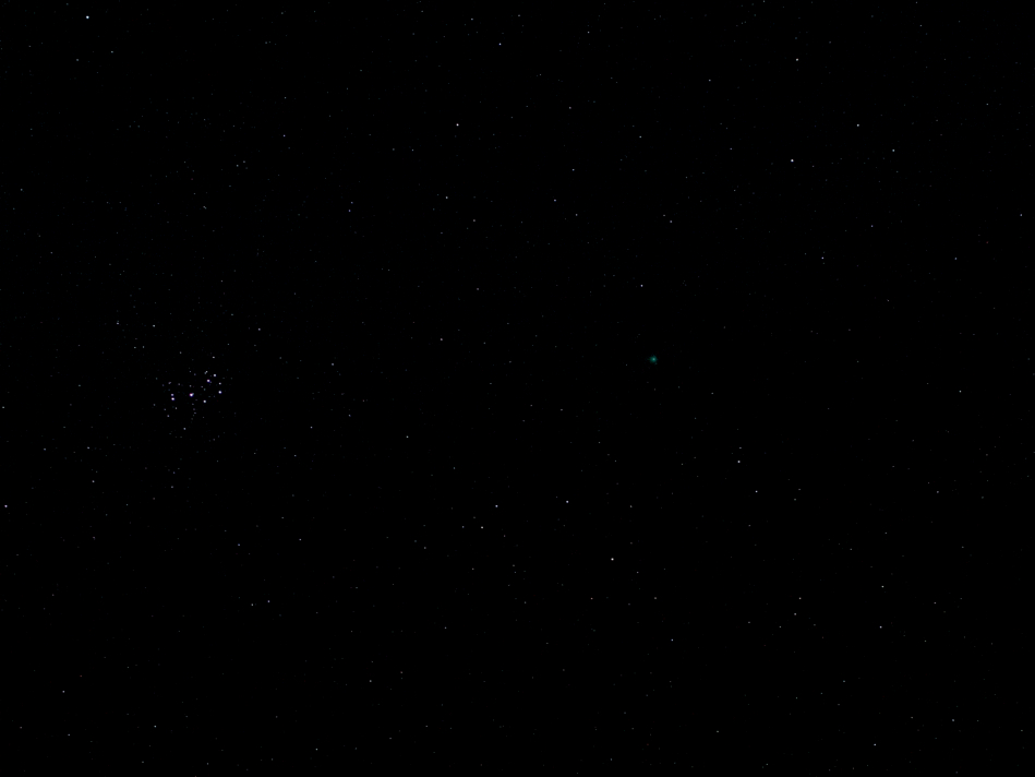 La mia prima cometa. Rientrando dal lavoro ho visto che il cielo era limpido, e ho provato a cercare la Lovejoy con il binocolo; avendola trovata piuttosto facilmente ho deciso di attaccare la reflex alla montatura del telescopio e di fare delle foto.