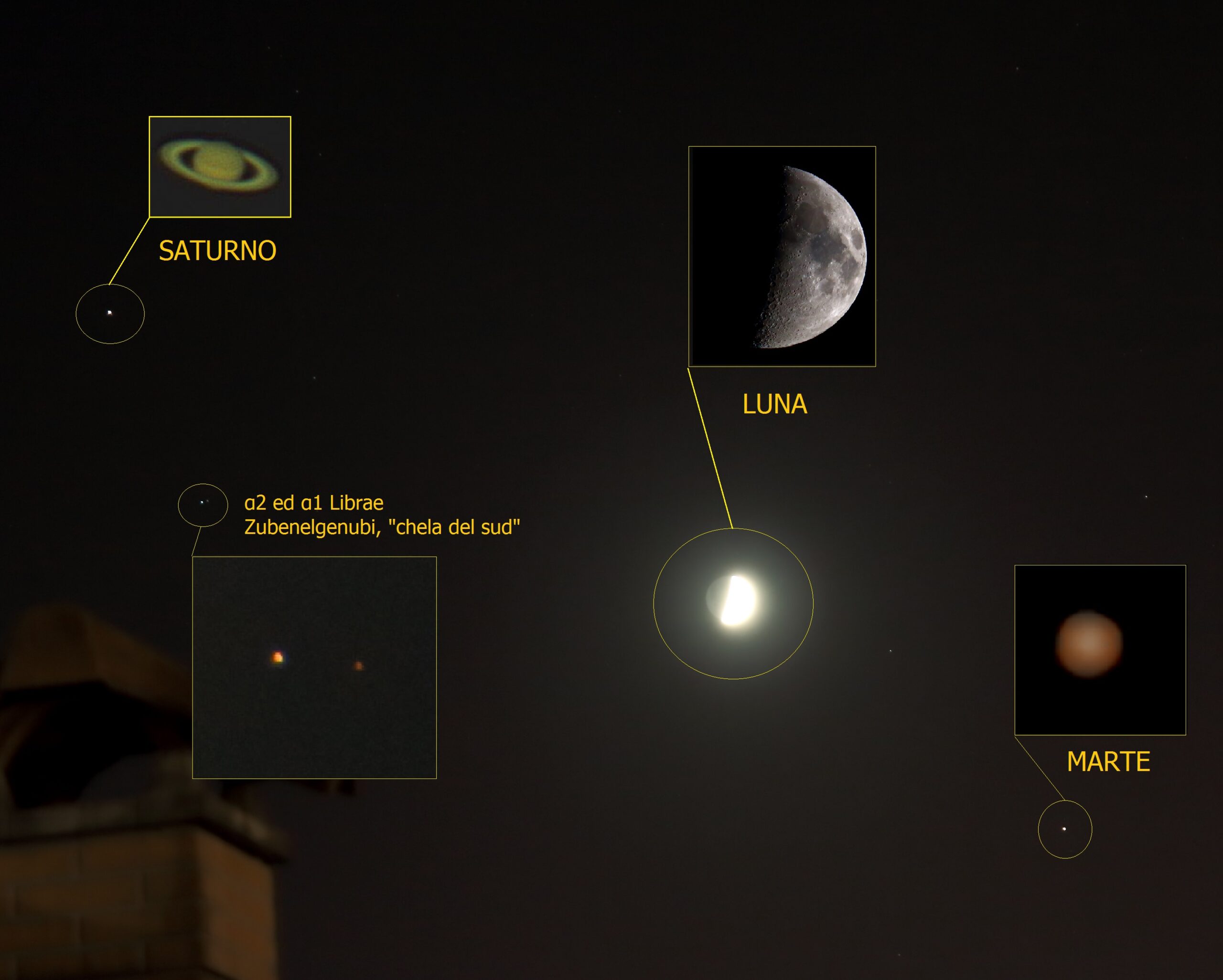 PS Il dettaglio di Saturno / Marte e α2 e α1 Librae