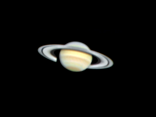 Saturno per picca. Malgrado il seeing dispettoso ho atteso con tenacia un momento di quiete, si fà per dire, per ‘sparare’ una ripresa