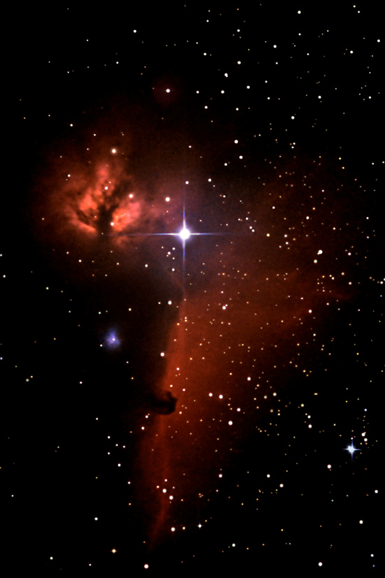 Ripresa dalle colline del Chianti (Torre Luciana). Nikon F90 al fuoco diretto, Montatura EQ6 Sky Scan, Guida manuale con monitor e telecamera da sorveglianza su MTO1000 in parallelo, Digitalizzazione con Epson 4180, Elaborazioni con Photoshop.