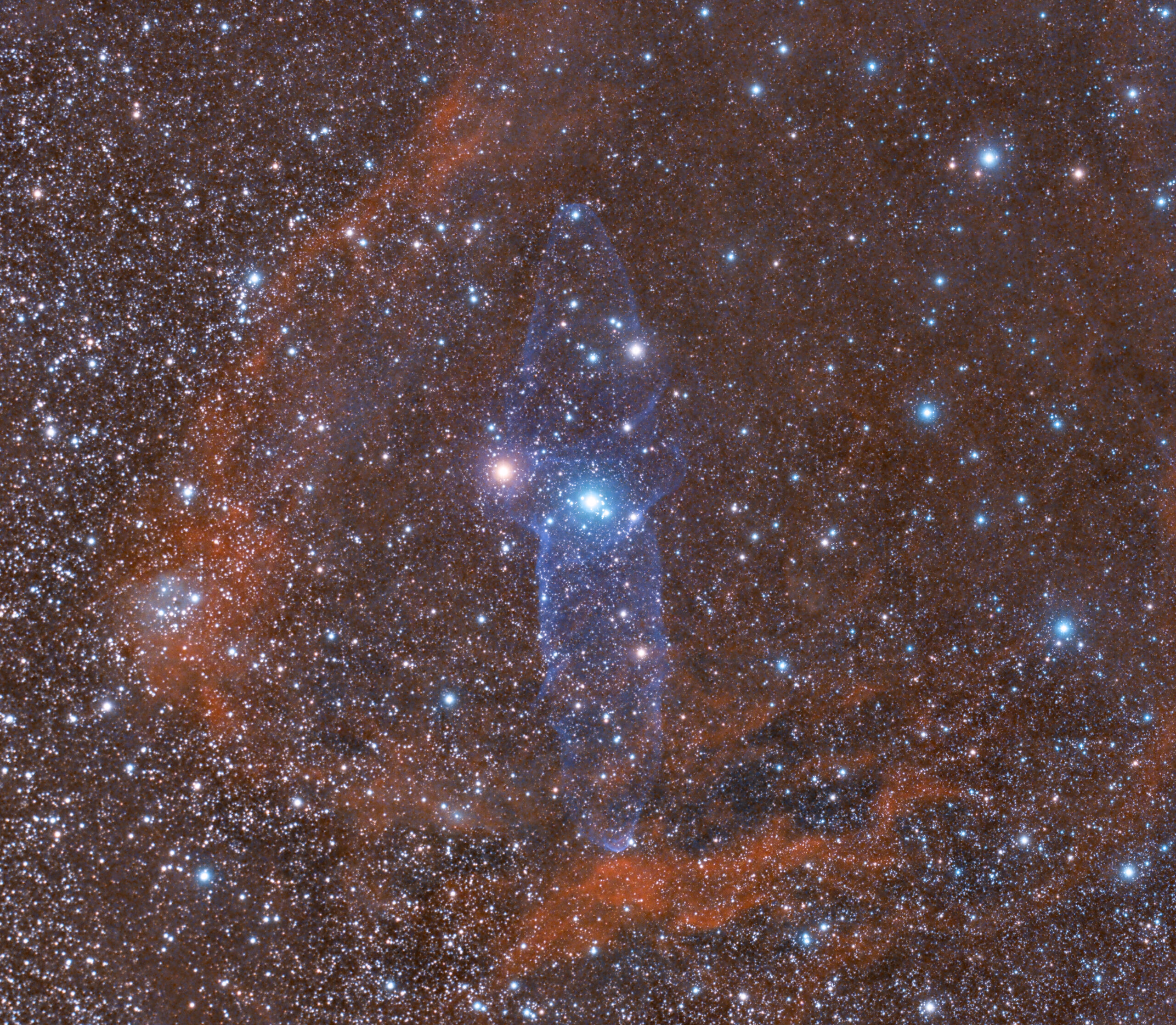 Sh2-129 è un’estesa nebulosa a emissione visibile nella costellazione di Cefeo, presenta una forma ad arco molto pronunciata, quasi una sorta di grande anello; a causa della sua forma, talvolta viene soprannominata Nebulosa Pipistrello Volante o Calamaro.