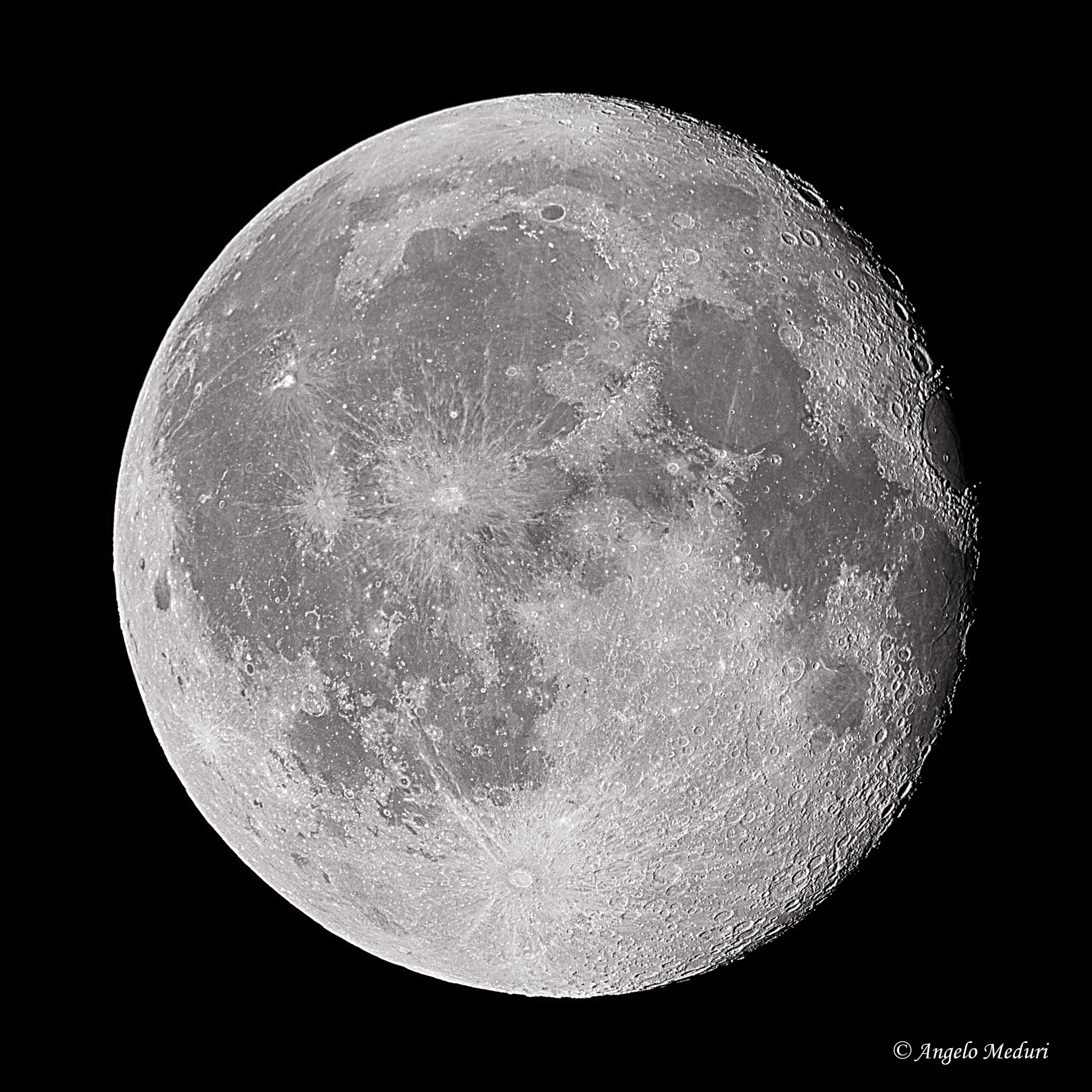 Luna al 17° giorno, gibbosa calante Waning Gibbous Moon Telescopio Meade 12 pollici Riduttore di focale 0,68x Fotocamera Nikon D850 Elaborazione con PhotoShop