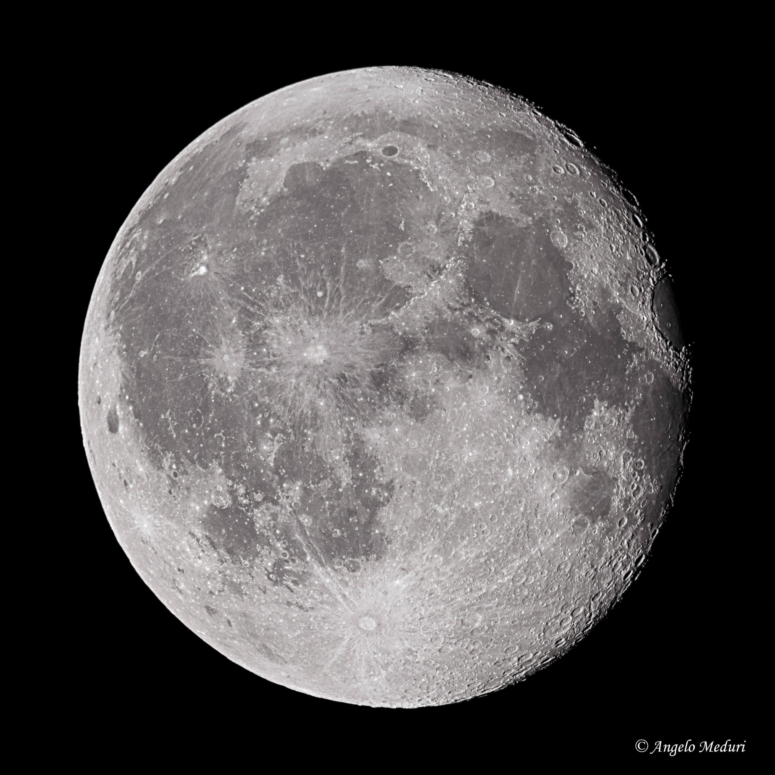 Luna al 17° giorno, gibbosa calante Waning Gibbous Moon Telescopio Meade 12 pollici Riduttore di focale 0,68x Fotocamera Nikon D850 Elaborazione con PhotoShop