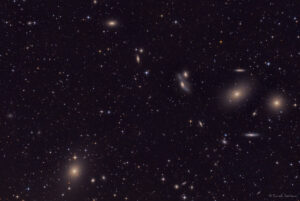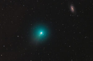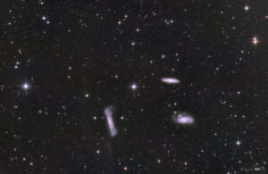 Costellazione boreale dei cani da caccia. Al suo interno troviamo una delle galassie più luminose a affascinanti contraddistinta dalla sigla M51, chiamata anche Galassia Vortice. Si trova a circa 30 milioni di anni luce dalla Terra. Si caratterizza per la vicinanza ad una seconda galassia di colore giallo con la quale interagisce e sembra “risucchiare” uno dei bracci della Galassia Vortice. Dalle foto scattate da Hubble in realtà si può facilmente capire che NGC 5195 sta passando dietro la Galassia Vortice e rimane parzialmente coperta da uno dei suoi bracci.