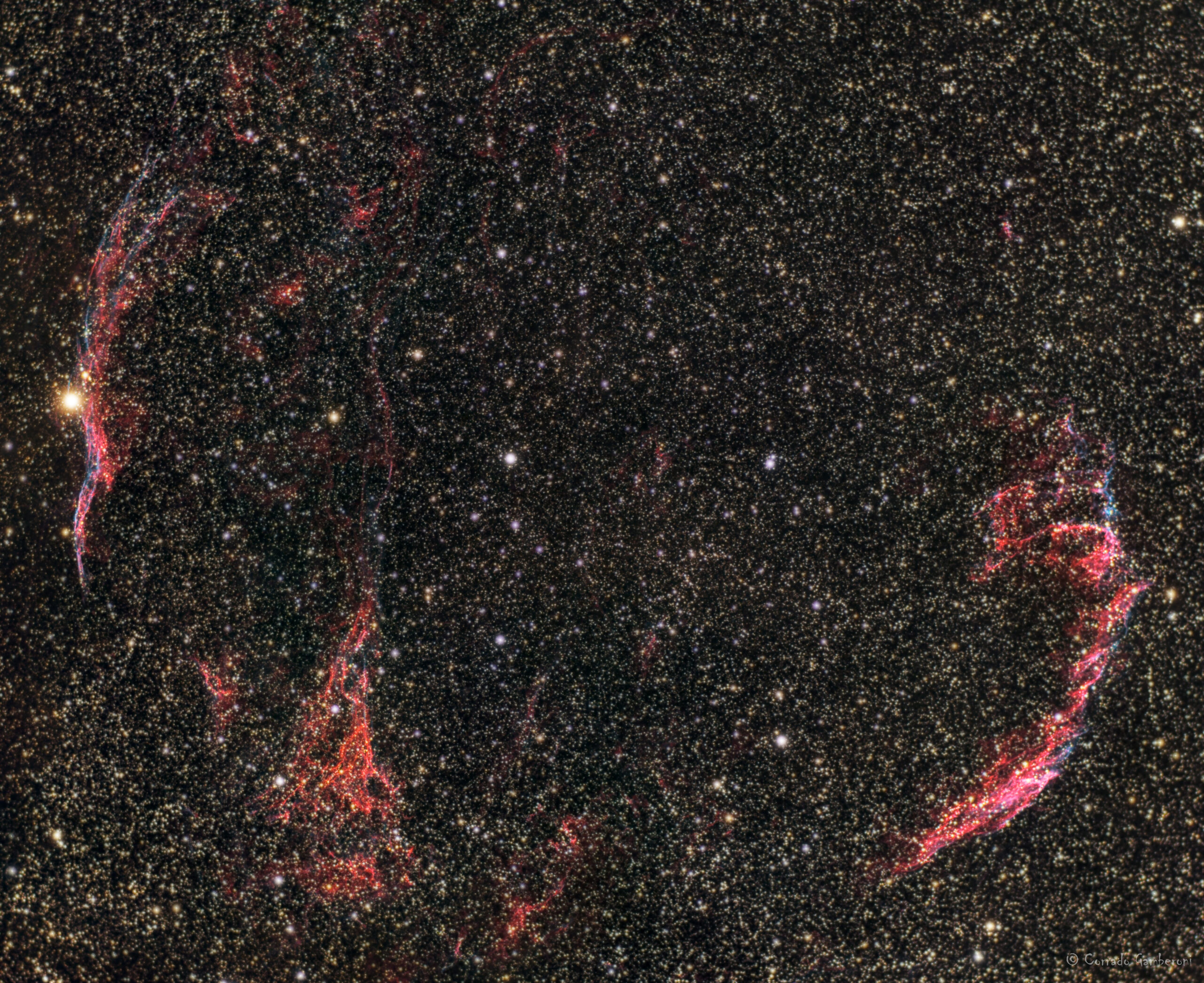 Contiene: NGC 6995, Network nebula, NGC 6992, IC 1340, Veil nebula, Lace-work nebula, Filamentary nebula, NGC 6960, The star 52Cyg