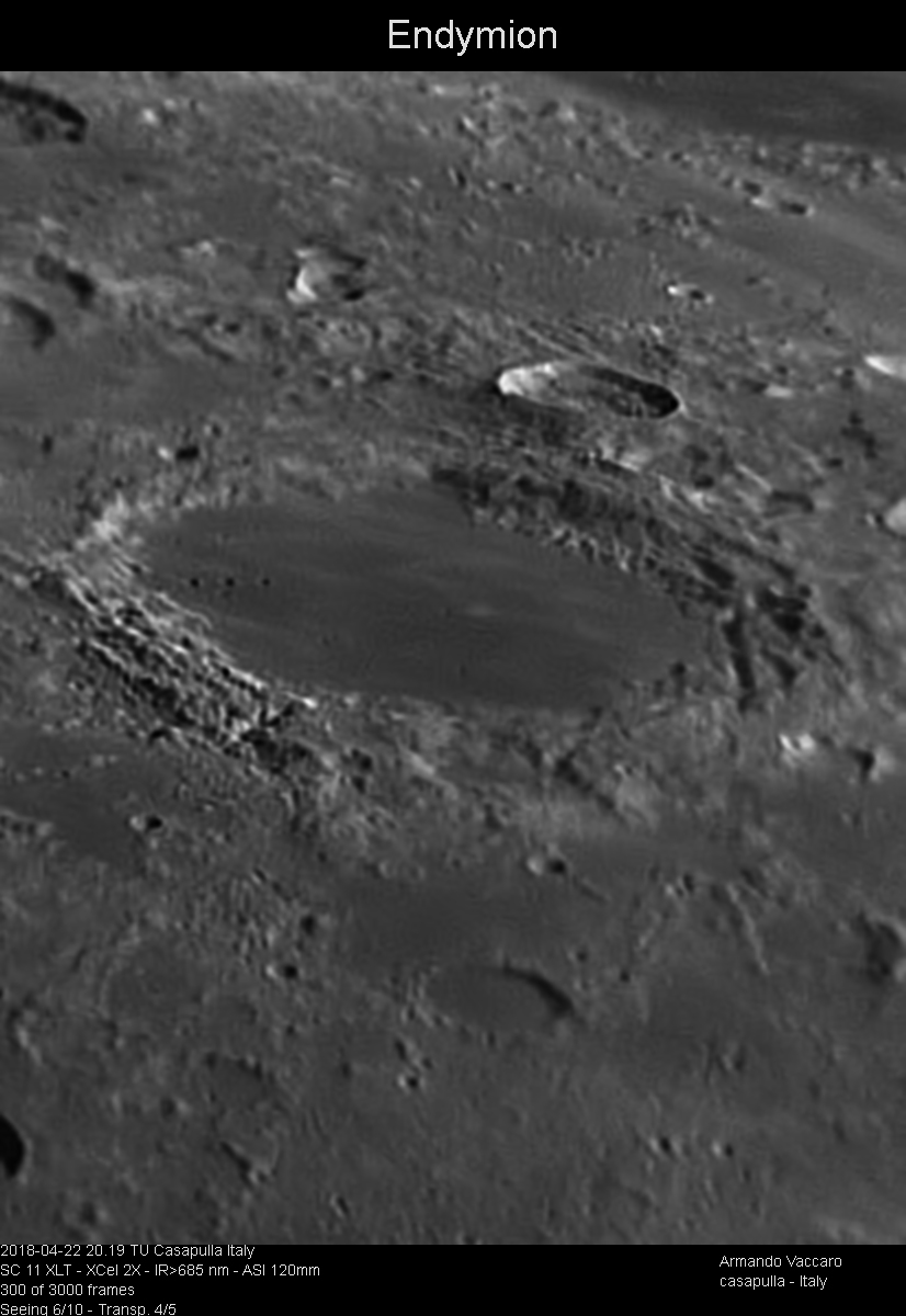 Endymion viene anche detto l’Archimede del lembo nord-est. E’ un punto di riferimento per cercar il prossimo bacino Humboldtiano posto immediatamente dietro. Lo troviamo appena sopra Atlas e Hercules