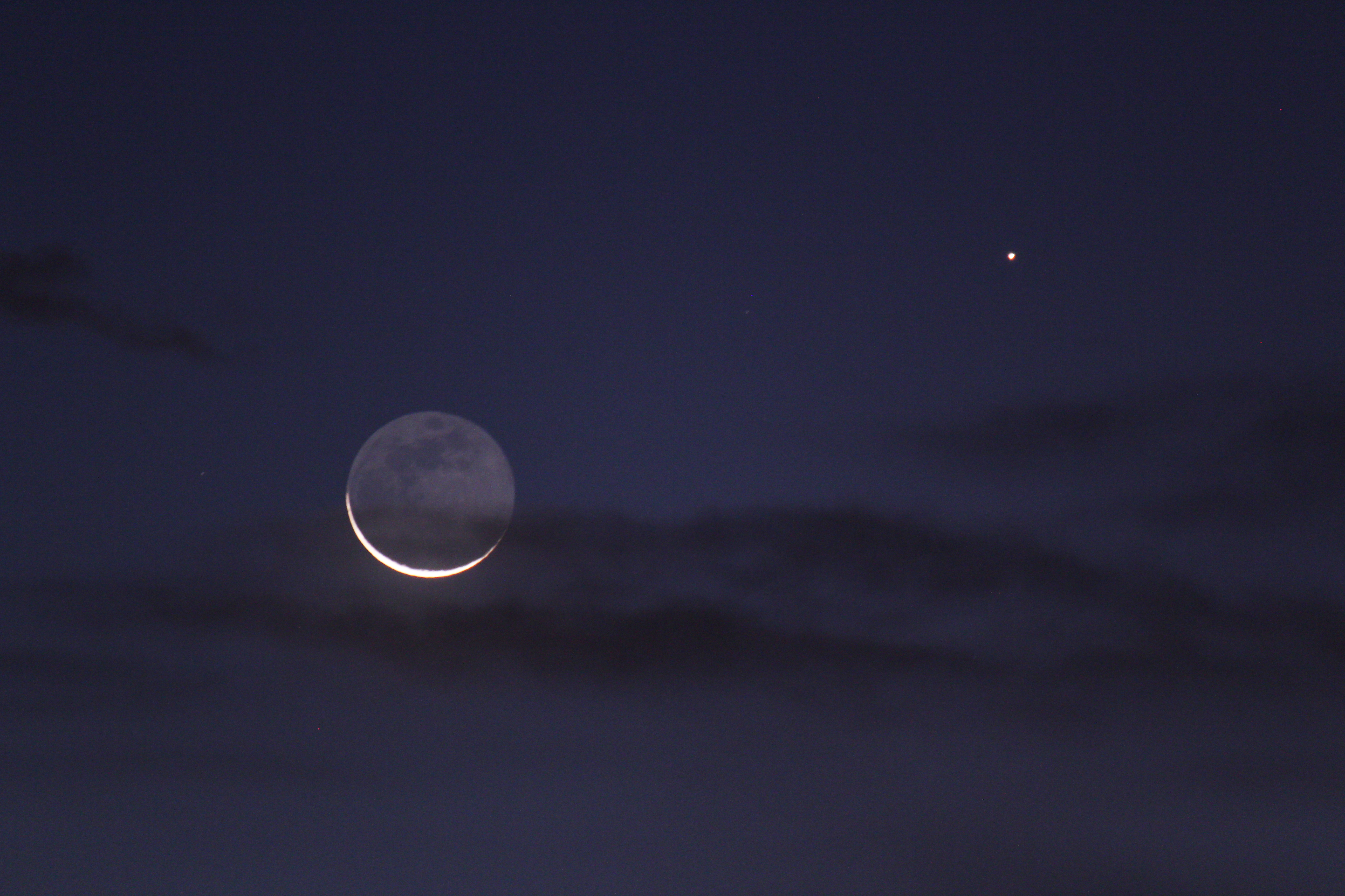 Una sottilissima falce di Luna con luce cinerea insieme a Mercurio era un’occasione troppo ghiotta, come perdere uno spettacolo del genere? Ci si alza presto e ci si prepara ma con l’incognita di non trovare poi l’orizzonte sgombro da nubi. Stamattina ci è andata bene!